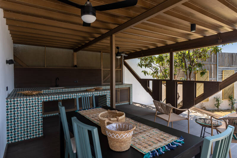 To keep the air fresh and breezy, the space is also equipped with two fans, so you can stay comfortable while you cook, eat, or just chill out.