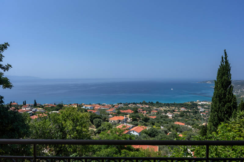 Perched above the landscape, this is the first of two balconies on the first floor and belongs to the twin bedroom. It offers uninterrupted views across Lourdas Bay and the shimmering Ionian Sea. Ideal for quiet mornings or peaceful evenings, this elevated space is perfect for sipping a drink, watching the sunset, and soaking in the beauty of the coastline and surrounding hills.